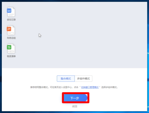 4.继续按照提示内容,选择模式,然后点击下一步,如图所示。