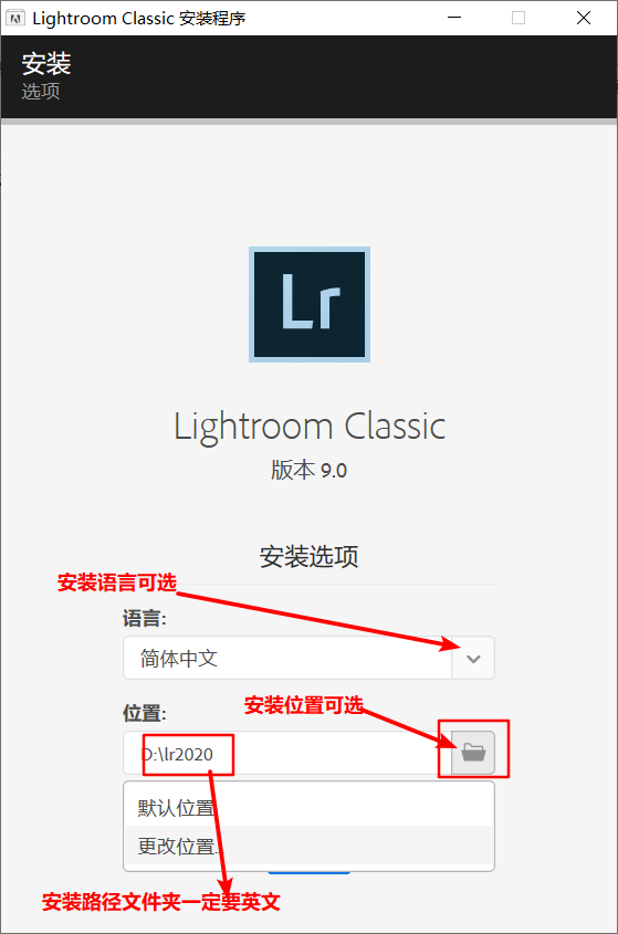 4、可以按照喜欢的语言以及安装位置选择,安装位置路径一定要英文。