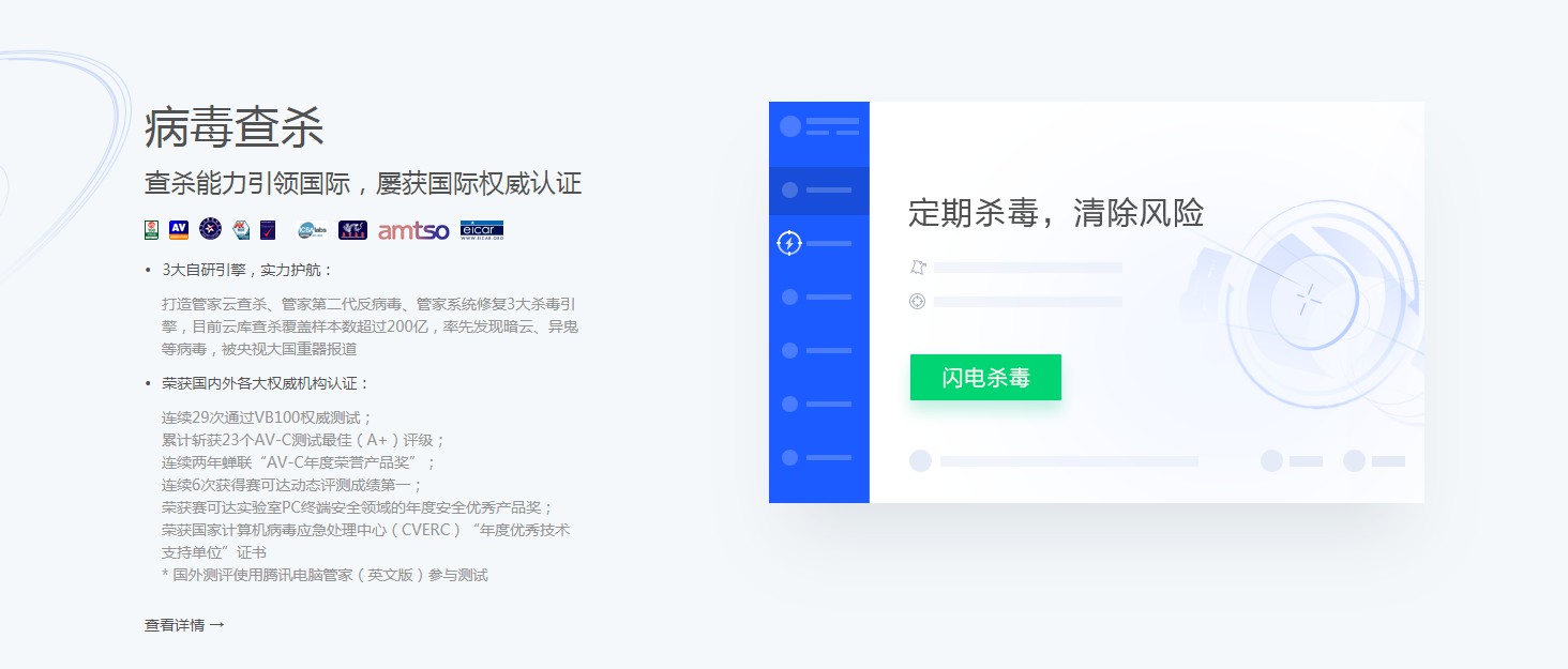腾讯电脑管家(原名QQ电脑管家/QQ管家/腾讯管家)是腾讯公司推出的一款免费安全软件,能有效预防和解决计算机上常见的安全风险。腾讯电脑管拥有云查杀木马,系统加速,漏洞修复,实时防护,网速保护,电脑诊所,健康小助手,强力卸载等功能,且独创了“管理+杀毒”二合一的开创性功能,依托小红伞(antivir)国际顶级杀毒引擎、腾讯云引擎等四核专业引擎查杀,完美解决杀毒修复问题,全方位保障用户上网安全。