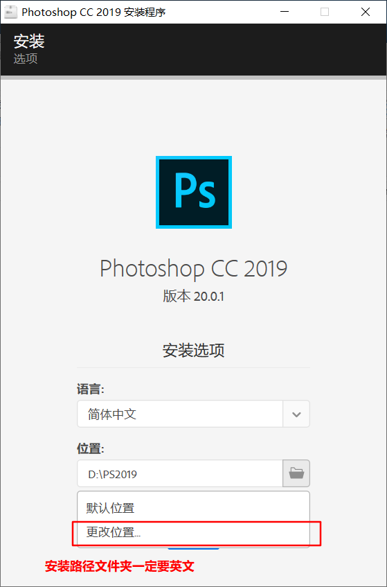 4、可以按照喜欢的语言以及安装位置选择,安装位置路径一定要英文。