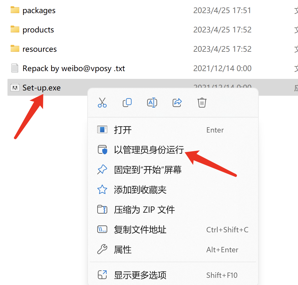 2、然后双击安装Set-up.exe,或者右键Set-up.exe选择“以管理员身份运行”
